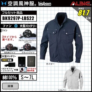 【BK6297P-LBS22(12V) セット】_綿100%ブルゾン+ファン+日本製バッテリー2022年型set_(空調風神服)