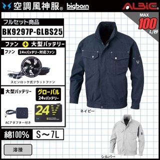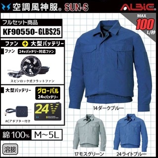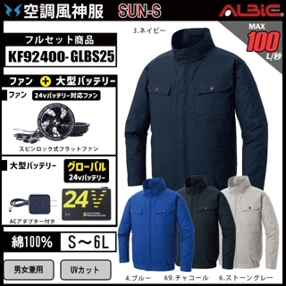 【KF92400-GLBS25 (24V) セット】_綿100%長袖作業服ブルゾン+ファン+バッテリー2025年型(グローバルモデル)set_(空調風神服)