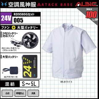 空調風神服 005 白衣 半袖 24V フルセット RD9580G