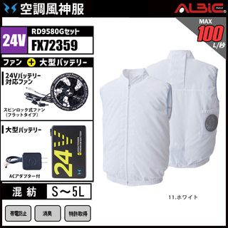 空調風神服 FX72359 白衣ベスト 24V フルセット RD9580G