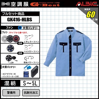 【GK416-HLBS(7.2V) セット】_警備-長袖シャツ+ファン+バッテリーset_(空調服)