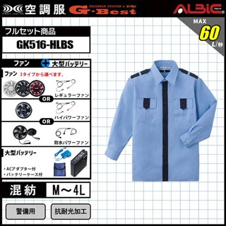 【GK516-HLBS(7.2V) セット】_警備-長袖シャツ+ファン+バッテリーset_(空調服)