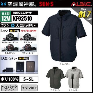 空調風神服 KF92510 半袖 日本製 12V フルセット RD9291J