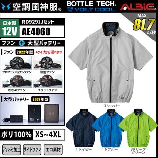 空調風神服 AE4060 半袖 日本製 12V フルセット RD9291J