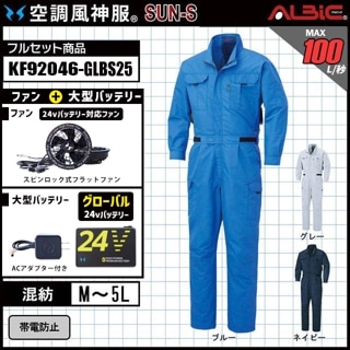 【KF92046-GLBS25 (24V) セット】_帯電防止-つなぎ服+ファン+バッテリー2025年型(グローバルモデル)set_(空調風神服_旧:KU92046)