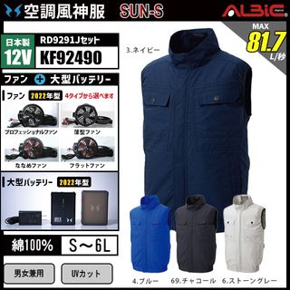 空調風神服 KF92490 ベスト 日本製 12V フルセット RD9291J