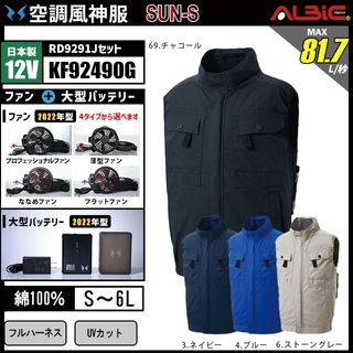 空調風神服 KF92490G ベスト 日本製 12V フルセット RD9291J