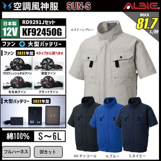 空調風神服 KF92450G 半袖 日本製 12V フルセット RD9291J