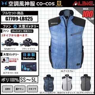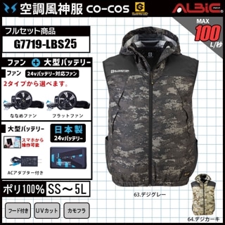【G7719-LBS25(24V) セット】_フード付きベスト+ファン+日本製24Vバッテリー2025年型set_(空調風神服)