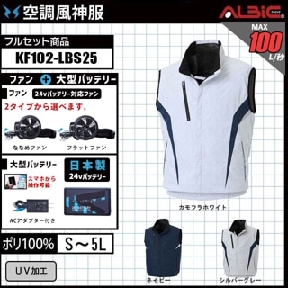 【KF92322-LBS25(24V) セット】_サイドファン式ベスト+ファン+日本製24Vバッテリー2025年型set_(空調風神服)