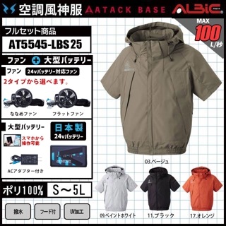 【AT6645-LBS25(24V) セット】_フルハーネス対応-半袖ブルゾン+ファン+日本製24Vバッテリー2025年型set_(空調風神服)