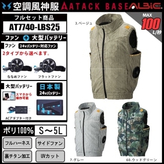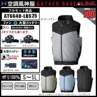 【AT6640-LBS25(24V) セット】_フルハーネス対応ベスト+ファン+日本製24Vバッテリー2025年型set_(空調風神服)
