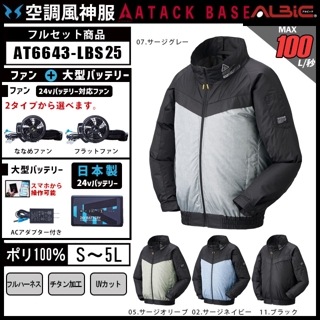 【AT6643-LBS25(24V) セット】_フルハーネス対応ブルゾン+ファン+日本製24Vバッテリー2025年型set_(空調風神服)