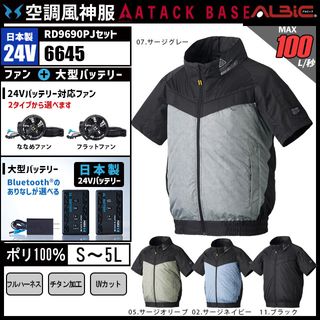 空調風神服 6645 半袖 日本製 24V フルセット RD9690PJ / NJ