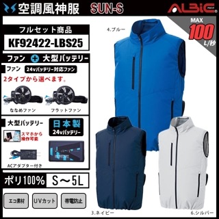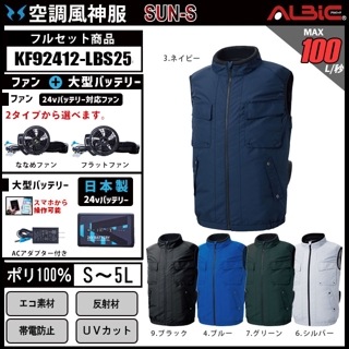 【KF92412-LBS25(24V) セット】_エコ制電ベスト+ファン+日本製24Vバッテリー2025年型set_(空調風神服)