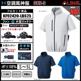 【KF92420-LBS25(24V) セット】_エコ制電半袖ブルゾン+ファン+日本製24Vバッテリー2025年型set_(空調風神服)