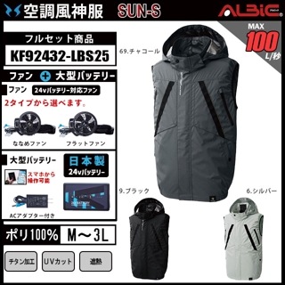 【KF92342-GLBS25 (24V) セット】_サイドファン式ベスト+ファン+バッテリー2025年型(グローバルモデル)set_(空調風神服)