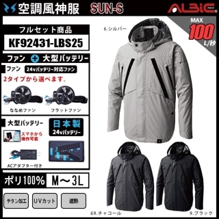 【KF92431-LBS25(24V) セット】_裏チタン加工長袖ブルゾン+ファン+日本製24Vバッテリー2025年型set_(空調風神服)