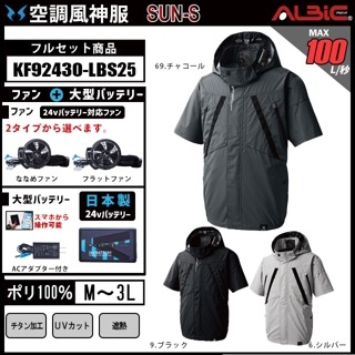 【KF92430-LBS25(24V) セット】_裏チタン加工半袖ブルゾン+ファン+日本製24Vバッテリー2025年型set_(空調風神服)