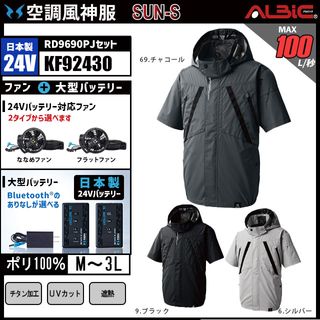 空調風神服 KF92430 半袖 日本製 24V フルセット RD9690PJ / NJ