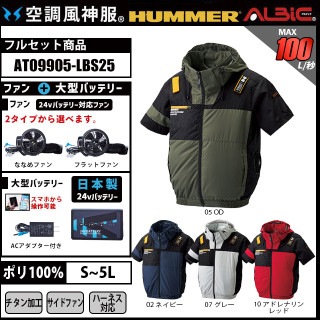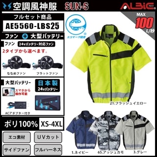 【AE5560-LBS25(24V) セット】_セフティ半袖ブルゾン+ファン+日本製24Vバッテリー2025年型set_(空調風神服)