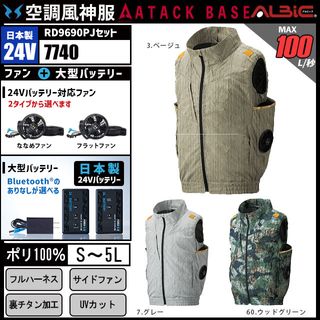 空調風神服 7740 ベスト 日本製 24V フルセット RD9690PJ / NJ