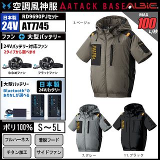 空調風神服 7745 半袖 日本製 24V フルセット RD9690PJ / NJ