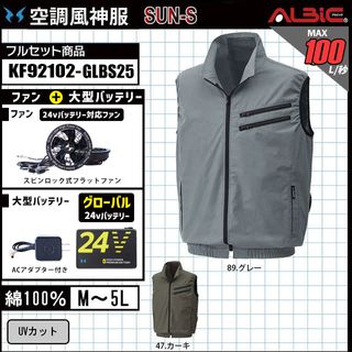 【KF92102-GLBS25 (24V) セット】_綿100%ベスト+ファン+バッテリー2025年型(グローバルモデル)set_(空調風神服_旧:KU92102)