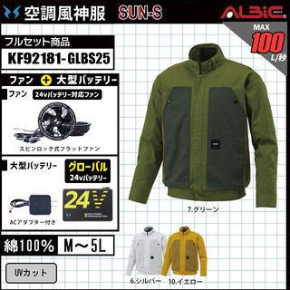 【KF92181-GLBS25 (24V) セット】_綿100%ブルゾン+ファン+バッテリー2025年型(グローバルモデル)set_(空調風神服_旧:KU92181)