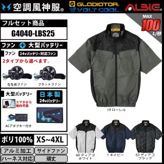 【G4040-LBS25(24vセット)】_フルハーネス対応サイドファン半袖ベスト+ファン+日本製24Vバッテリー2025年型set_(空調風神服)
