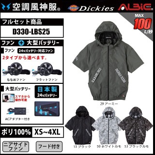 【D330-LBS25(24vセット)】_Dickies フード付き半袖ブルゾン+ファン+日本製24Vバッテリー2025年型set_(空調風神服)