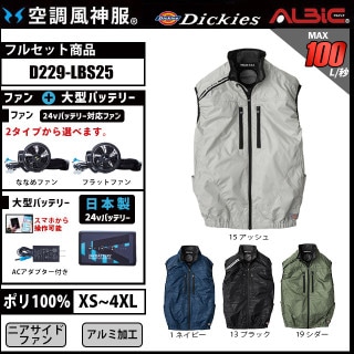 【D229-LBS25(24v)セット】_Dickies 日傘遮熱ベスト+ファン+日本製24Vバッテリー2025年型set_(空調風神服)