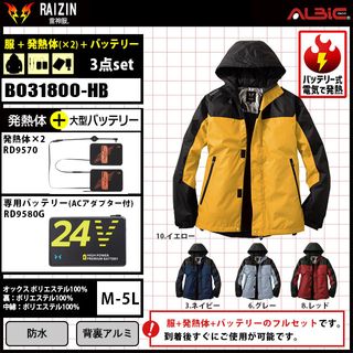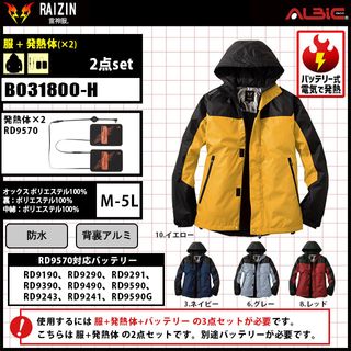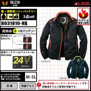 【BO31800-HBセット】_電熱ジャケット+発熱体(RD9570)+バッテリー(RD9580G)set_(雷神服)_電熱服