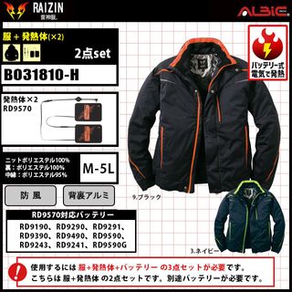 【BO31810-HBセット】_電熱ブルゾン+発熱体(RD9570)+バッテリー(RD9580G)set_(雷神服)_電熱服