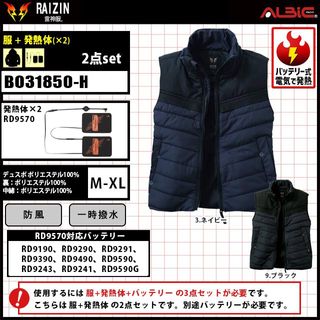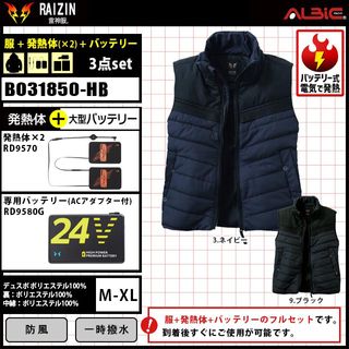 【BO31850-HBセット】_電熱ベスト+発熱体(RD9570)+バッテリー(RD9580G)set_(雷神服)_電熱服