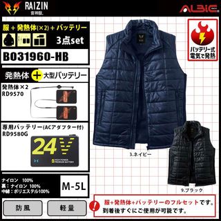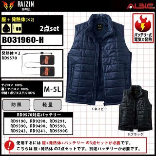【BO31960-HBセット】_電熱ベスト+発熱体(RD9570)+バッテリー(RD9580G)set_(雷神服)_電熱服
