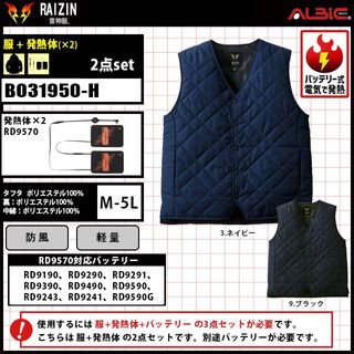 【BO31950-HBセット】_電熱ベスト+発熱体(RD9570)+バッテリー(RD9580G)set_(雷神服)_電熱服