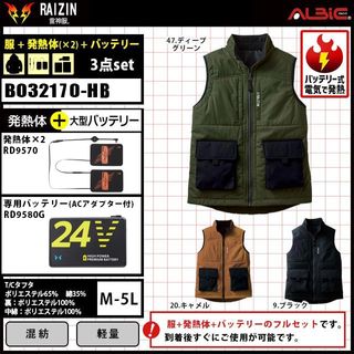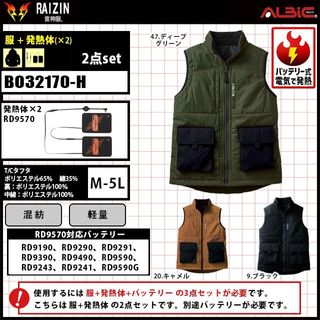 【BO32170-HBセット】_電熱ベスト+発熱体(RD9570)+バッテリー(RD9580G)set_(雷神服)_電熱服