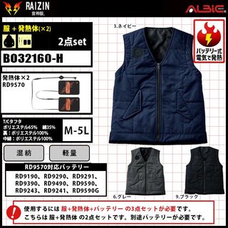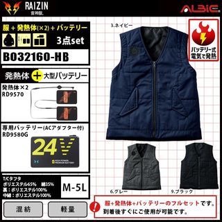 【BO32160-HBセット】_電熱ベスト+発熱体(RD9570)+バッテリー(RD9580G)set_(雷神服)_電熱服