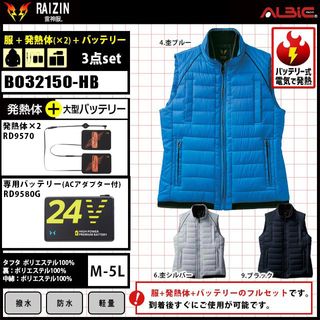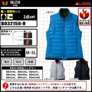 【BO32150-HBセット】_電熱ベスト+発熱体(RD9570)+バッテリー(RD9580G)set_(雷神服)_電熱服