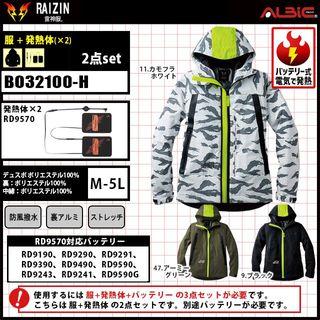 【BO32100-HBセット】_電熱ジャケット+発熱体(RD9570)+バッテリー(RD9580G)set_(雷神服)_電熱服