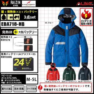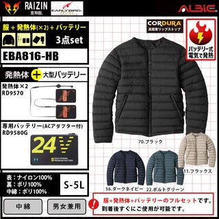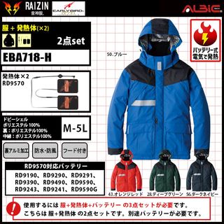 【EBA718-HBセット】_電熱ジャケット +発熱体(RD9570)+バッテリー(RD9580G)set_(雷神服)_電熱服
