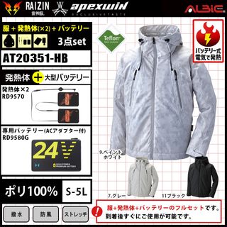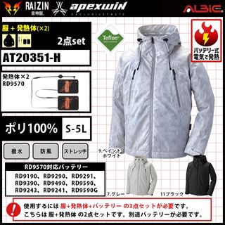 【AT20351-HBセット】_雷神服 電熱ブルゾン+発熱体(RD9570)+バッテリー(RD9580G)set_(アタックベース)_電熱服