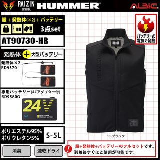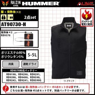 【AT90730-Hセット】_雷神服 HUMMER 電熱ベスト+発熱体(RD9570)set_(アタックベース)_電熱服