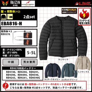 【EBA816-Hセット】防寒ジャケット+発熱体(RD9570)set(雷神服)_電熱服