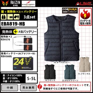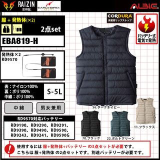 【EBA819-HBセット】防寒ベスト+発熱体(RD9570)+バッテリー(RD9580G)set(雷神服)_電熱服