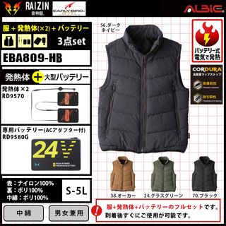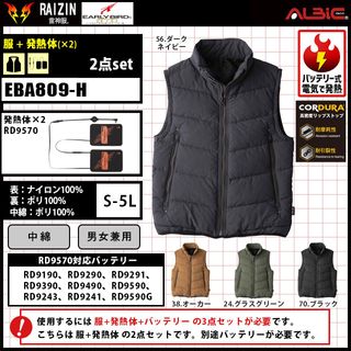 【EBA809-HBセット】防寒ベスト+発熱体(RD9570)+バッテリー(RD9580G)set(雷神服)_電熱服
