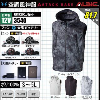 空調風神服 3540 ベスト 日本製 12V フルセット RD9291J