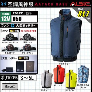 空調風神服 050 ベスト 日本製 12V フルセット RD9291J