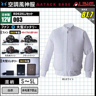 空調風神服 003 白衣 日本製 12V フルセット RD9291J